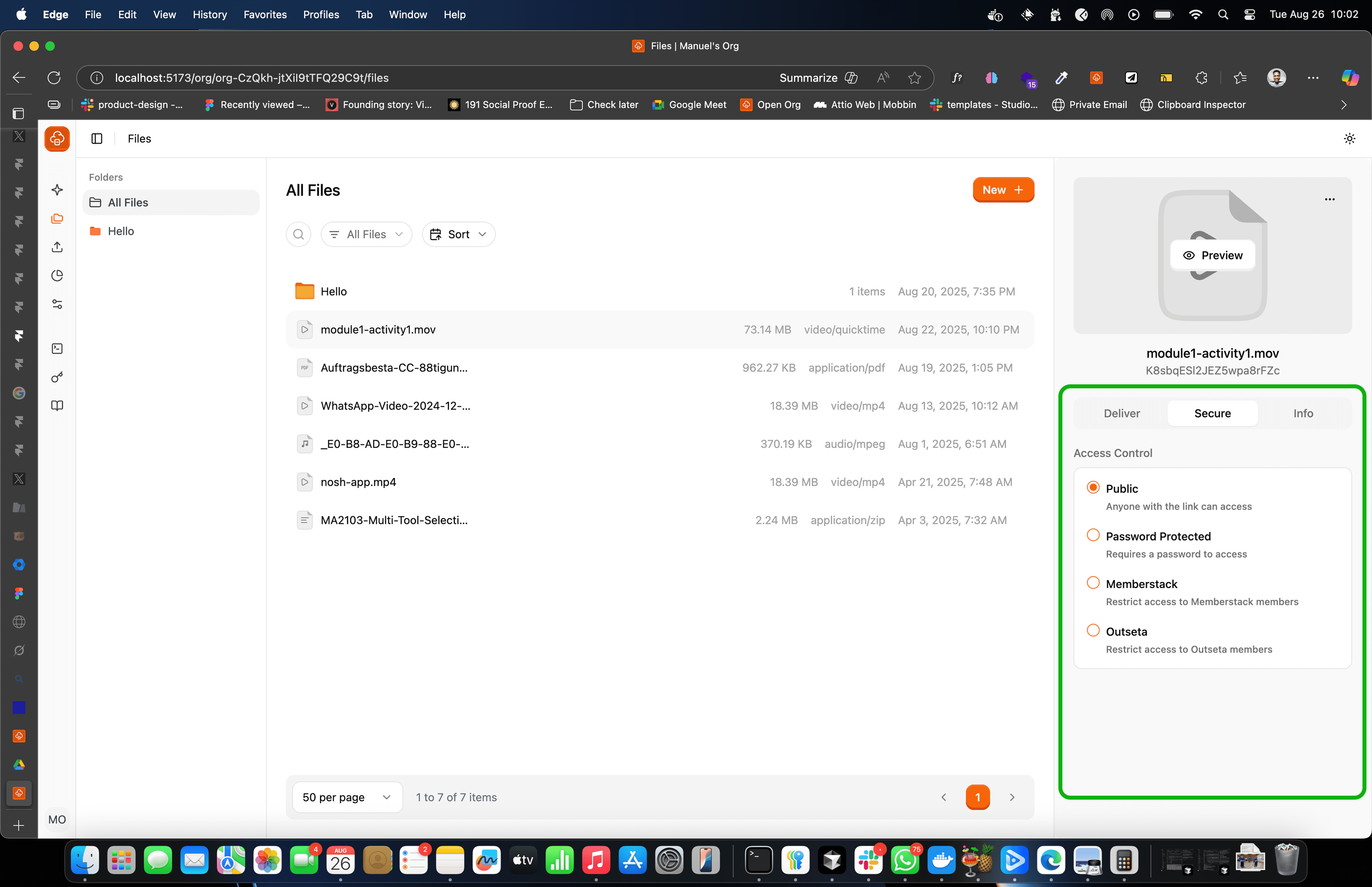 Flowdrive allows you to lock files behind authentication layers like Memberstack, Outseta, or simple password protection, so only authorized or paying customers or authorized team members get access. This keeps you and your clients protected.